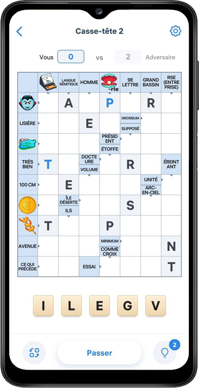 When the grid is finished, the player compare his score with the opposing player (a BOT) and if his score is higher than his, he can reach the next difficulty level.