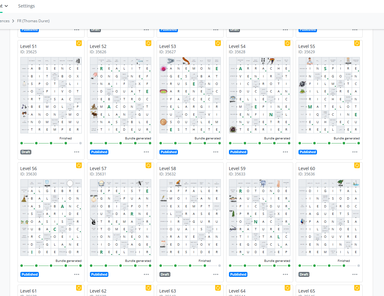 Generate multiples grids, which were randomly created based on words from a french dictionnary