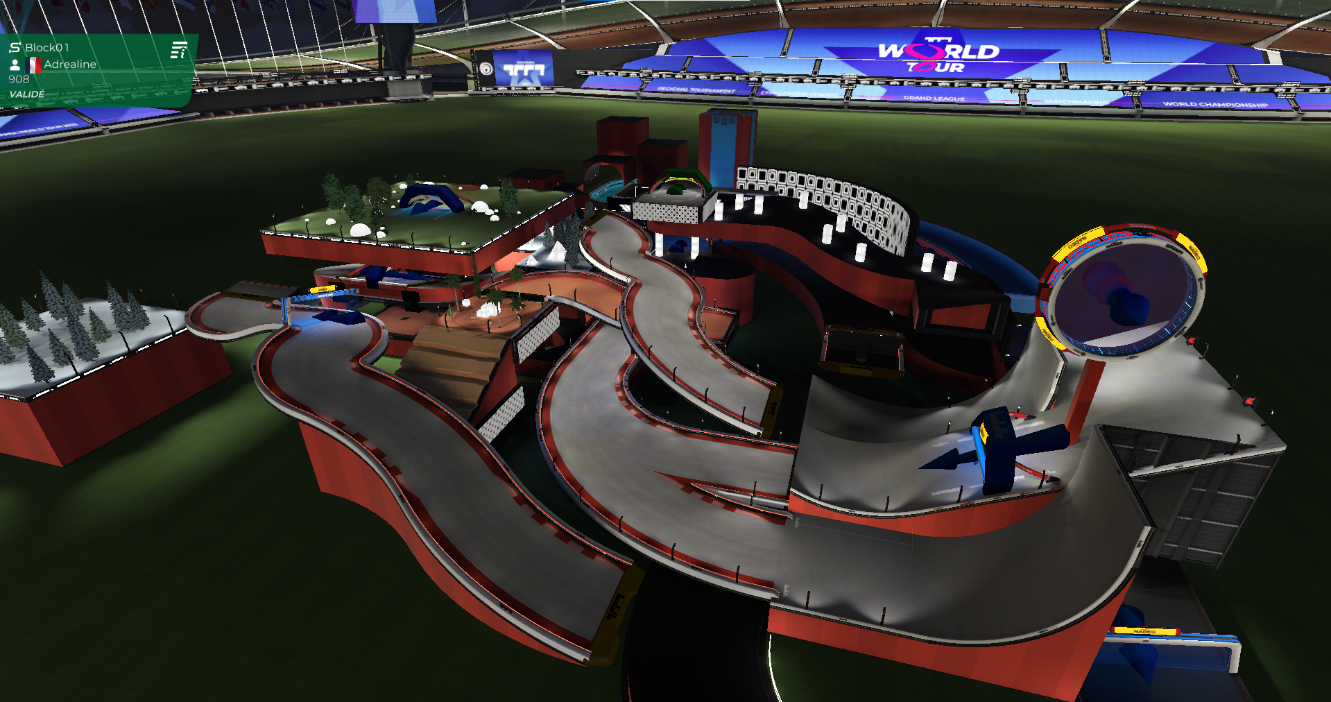 The first version of the track aims to create roads, turns, jumps, transitions... to constitute the whole map. It is the first but the hardest part of the map construction because we have to make sure that the map is fun to play and that all works correctly.